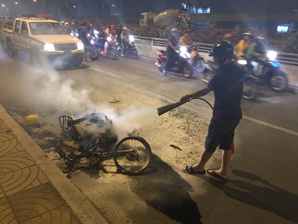 Thời điểm này xe máy do người đàn ông điều khiển lưu thông trên Xa lộ Hà Nội hướng từ trung tâm thành phố về quận Thủ Đức. Khi đến giữa cầu Rạch Chiếc thì bất ngờ xe máy bị bốc cháy khiến chủ phương tiện hoảng loạn nhảy khỏi xe.