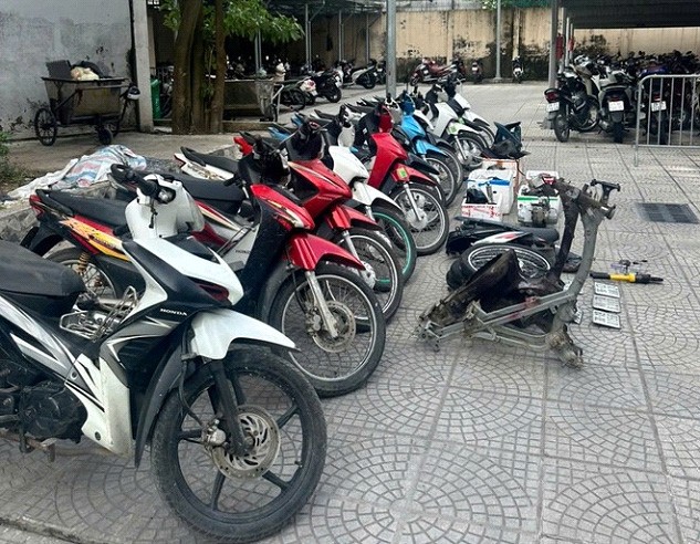 Sau 24 giờ nỗ lực điều tra, Công an quận Hà Đông phối hợp với Công an thị xã Hương Thủy (Hà Tĩnh) bắt giữ 8 đối tượng nêu trên, thu giữ 1 kìm thủy lực, 1 tuốc-nơ-vit, 3 cờ lê, 13 xe máy các loại cùng nhiều phụ tùng xe máy đã tháo rời.