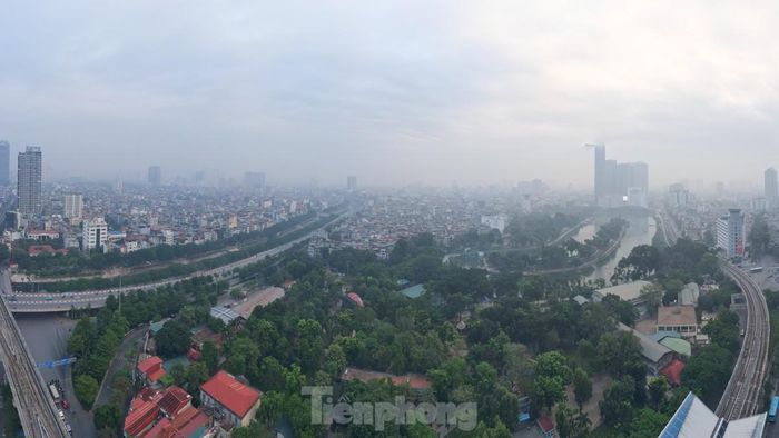 Tòa Lotte Tây Hồ bị che khuất bởi màu trắng đục.