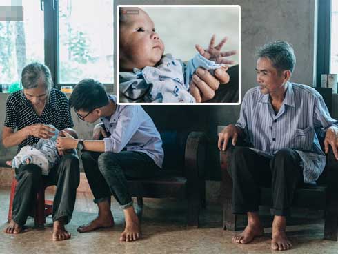 Nằm trọn trong vòng tay của ông nội, chốc chốc Minh lại nở nụ cười tươi, ánh mắt ngơ ngác nhìn xung quanh. Không như Công, Minh còn quá bé để cảm nhận được nỗi đau thắt tâm can mà ông bà, các cô, anh trai đang gánh chịu.