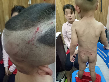 Bị tấn công bất ngờ, người phụ nữ yếu ớt chỉ biết ôm mặt, chân cầu xin chồng tha mạng nhưng anh V. vẫn không buông tha.