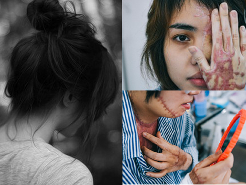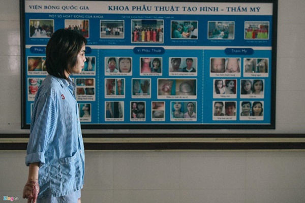 Chị Lê Thị Lan Vy đang điều trị tại Viện Bỏng quốc gia. Ảnh: Quỳnh Trang.