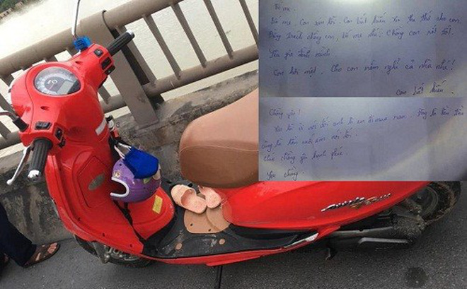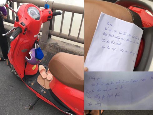Chiếc xe máy, đôi dép cùng lá thư nạn nhân để lại trên cầu trước khi nhảy xuống sông Kinh Thầy.
