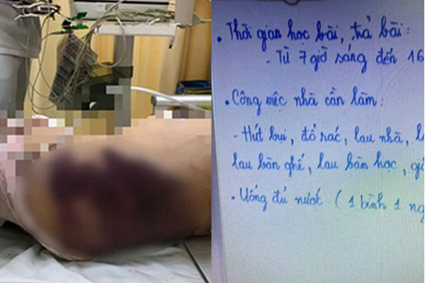 "Tại nơi bé sinh sống, được cho là hiện trường gây ra cái chết thương tâm, cơ quan chức năng ghi nhận còn nhiều hình ảnh đau lòng như cây lau nhà đã bị gãy, trên đó có dính chùm tóc của bé. Ngoài ra còn có bảng danh sách dài ghi hàng loạt công việc hàng ngày cháu bé 8 tuổi phải làm…", nguồn tin của Tuổi Trẻ cho biết.