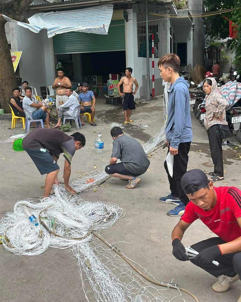 Gia đình dùng lưới cỡ lớn chuẩn bị thả xuống sông - nơi tìm thấy các vật dụng của Hải Như - Ảnh: Gia đình cung cấp
