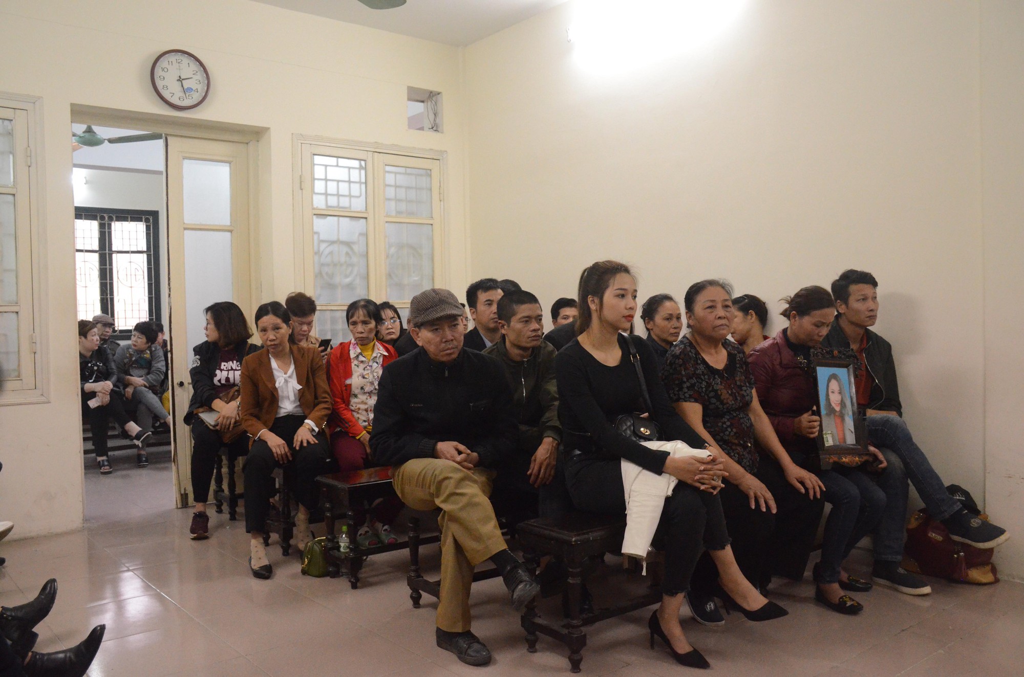 Gia đình nạn nhân ôm di ảnh cô gái xấu số có mặt tại tòa.