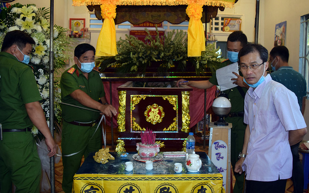 Cảnh sát mở quan tài kiểm tra (Ảnh: Vnexpress)