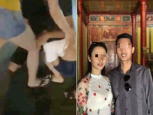 Hình ảnh anh V. cởi trần can ngăn người nhà hành hung chị G.