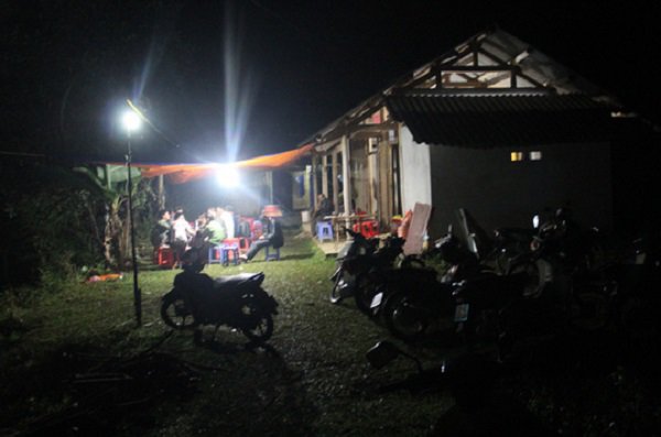 Ngôi nhà của gia đình anh Bao lọt thỏm giữa màn đêm tối, dù muộn nhưng hàng xóm vẫn đến chia buồn.