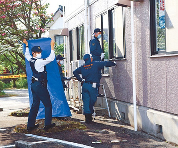 Điều tra viên kiểm tra căn phòng nơi nạn nhân và nghi phạm sống cùng nhau ở Akada, thành phố Toyama, vào chiều 6-5. Ảnh: Kitanippon Shimbun