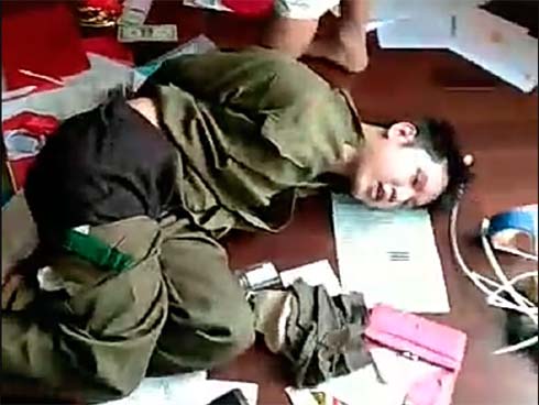 Đối tượng Kiên khi bị Thiếu tướng Trần Công Trường khống chế tại nhà.