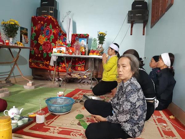 Nghe những lời bà Ngoan nói trong căn phòng tĩnh lặng mọi người lại òa khóc. Chị Đào Thị Thành (SN 1982, vợ anh H.) ngồi bệt bên cạnh ban thờ chồng khóc ngất lên ngất xuống chẳng thể nói được câu gì. Bên cạnh chị Thành là cháu Trịnh Kim Tuyến (16 tuổi) ánh mắt đỏ hoe vịn gục đầu vào vai mẹ, cháu khóc không nên lời vì tiếc thương cha ra đi mà không nhắm mắt.