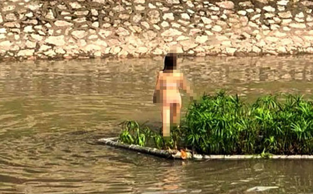 Trước đó, vào khoảng 9h sáng 6/8, người dân sống dọc bờ sông Tô Lịch, địa phận phường Quan Hoa chứng kiến một cô gái cởi đồ bơi ra bè cây giữa sông, rồi nhảy múa.