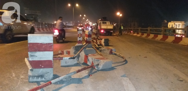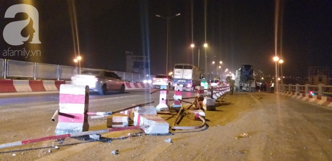 Khi đang lưu thông đến dốc cầu Thanh Trì, chiếc xe bồn bất ngờ nổ lốp khiến tài xế mất lái đâm vào dải phân cách. Cùng lúc này 2 xe máy đi phía sau không kịp phản ứng liền lao vào những thanh sắt chắn ngang đường dẫn đến chấn thương.