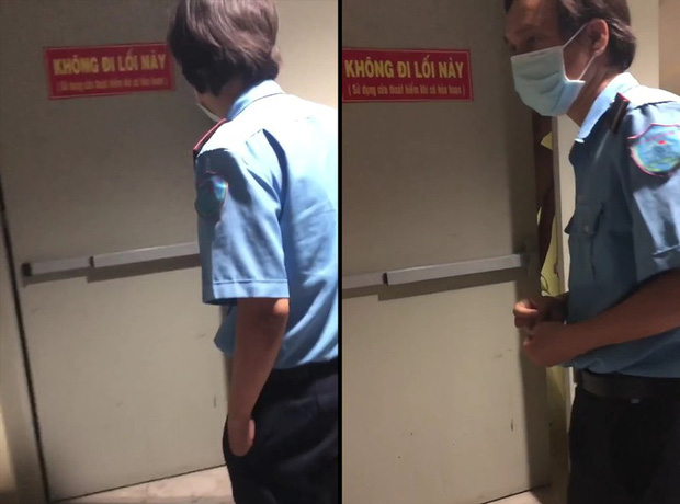 Bảo vệ toà nhà phát hiện, giải cứu nam sinh. Ảnh cắt từ clip