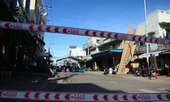Địa phương khoanh vùng phong tỏa nơi có nguy cơ cao ở chợ La Gi - Ảnh: Tuổi trẻ.