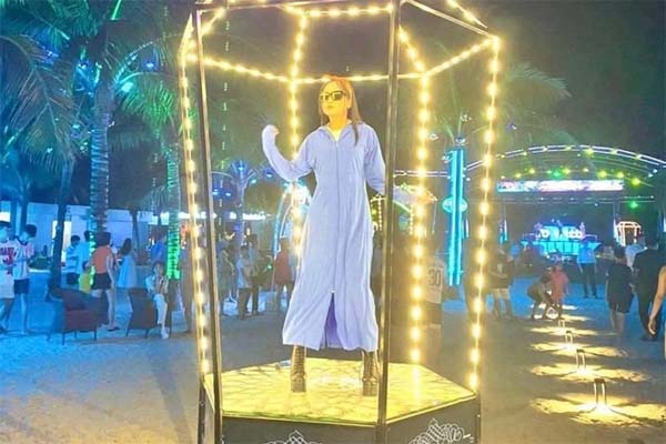 Nữ vũ công quán bar bãi biển nhảy trong lồng kính tại nơi công cộng bị cho là phản cảm.