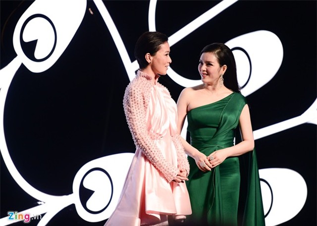| Xa Thi Mạn rạng rỡ bên Lý Nhã Kỳ trong show thời trang tối 11/11 ở TP HCM. Khác với vẻ ngoài cá tính khi xuất hiện tại sân bay, ngôi sao Cung tâm kế thanh lịch và dịu dàng trong chiếc đầm hồng, phần tay áo được kết hạt cầu kỳ. |