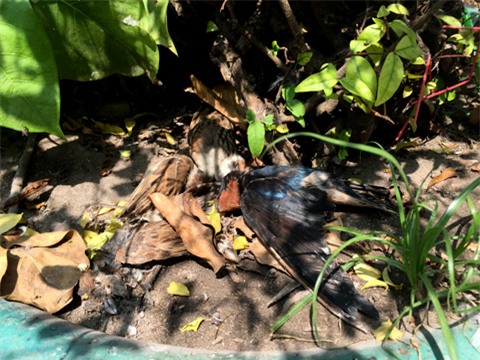 Xác chim chất đống trong một bồn cây. |
