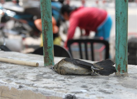 Những con chim phóng sinh, thay vì bay lên bầu trời thì nằm chết la liệt trong sân chùa.