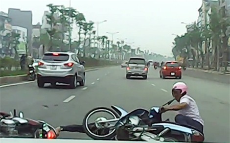 Trước đó, vào lúc 8h30 ngày 7-11, camera hành trình trên một xe ô tô đã ghi lại hình ảnh chiếc Toyota Innova màu bạc mang BKS: 17A-022.79 phóng nhanh hất văng cô gái đi xe máy xuống đường rồi tăng ga bỏ trốn khỏi hiện trường.