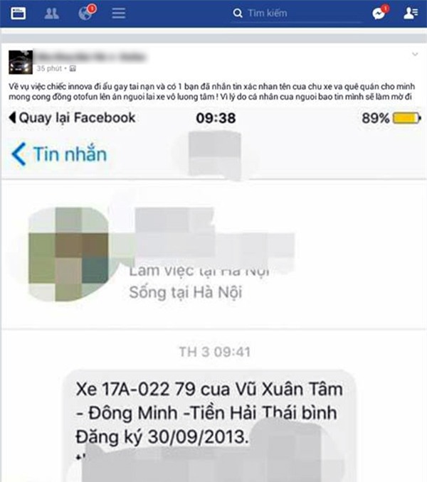 Thông tin về chủ xe được chia sẻ trên MXH. |
