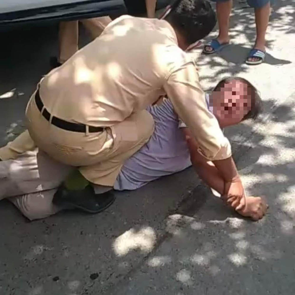 Nam tài xế chống đối và bị lực lượng cảnh sát khống chế.