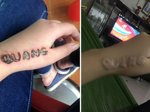 xăm hình "lạ" ở cẳng chân sau đó cô gái trẻ lại muốn xóa đi. Không may trong quá trình xóa hình xăm bằng laser cô gái đã bị bỏng nặng (độ 3).