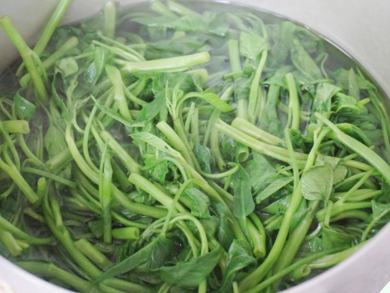 Những tưởng cách này sẽ giúp rau muống giòn ngon thế nhưng không phải. Việc chần trước sẽ làm cho rau mất đi độ giòn vốn có.