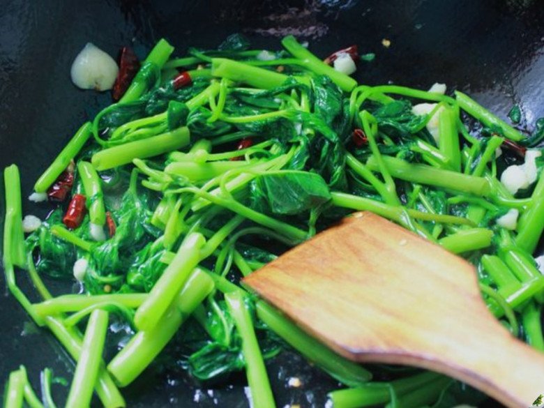 - Không nêm muối trực tiếp vào rau muống. Nên thay bằng nước sốt có pha muối và xì dầu.