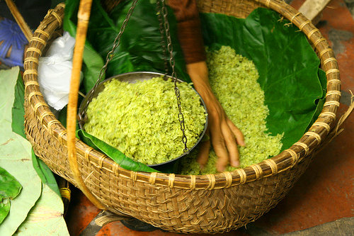 Mỗi khi thấy các bà, các cô gánh/bê những thúng cốm đựng trong những tấm lá sen tròn và cũng xanh muôn muốt màu ngọc thạch tức là bạn nhìn thấy mùa thu.