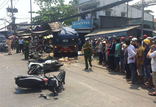 Nhiều xe gắn máy nằm la liệt sau cú đâm liên hoàn của xe ben |
