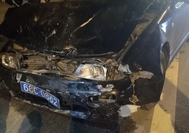Chiếc ôtô gây tai nạn bỏ lại hiện trường
