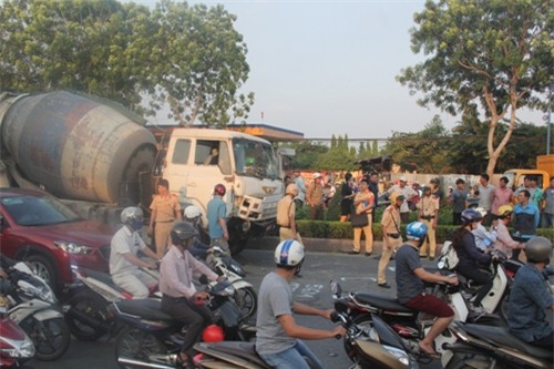 Vào thời điểm trên, chiếc xe bồn trộn bên tông mang biển số đỏ đang lưu thông trên làn đường ô tô hướng từ An Sương đi trung tâm TP. |