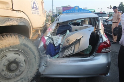 Vụ tai nạn khiến các phương tiện bị hư hỏng nặng, giao thông trên đường Trường Chinh hướng vào trung tâm thành phố bị tê liệt.
