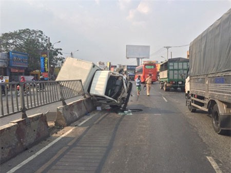 Khi đến trước số nhà 810 (phường Hiệp Bình Phước, quận Thủ Đức), ôtô tải bất ngờ bị chiếc xe buýt số hiệu 616 BKS 53N chạy tuyến 23/9 – KDL Đại Nam do tài xế Nguyễn Quốc Bình (khoảng 40 tuổi) điều khiển tông mạnh từ phía sau. Xe tải lật nhào, tông đổ hàng loạt dải phân cách rồi nằm vắt vẻo bên trên.