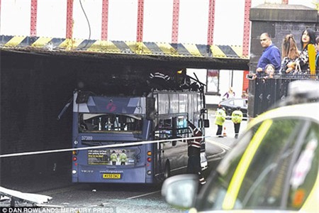 17 hành khách bị thương khi phần mái của xe buýt hai tầng tách rời lúc xe đi dưới cầu vượt ở một thị trấn tại Anh hôm 9/9.