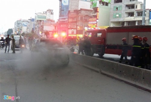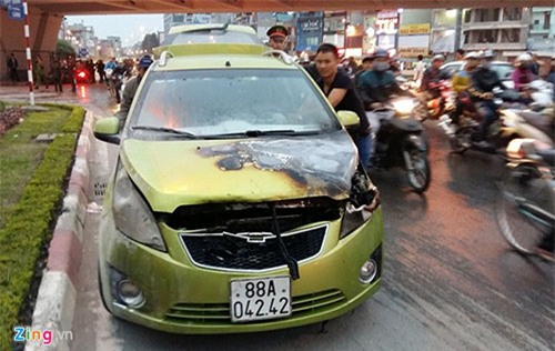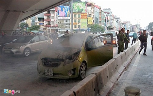 cầu vượt Ngã Tư Sở thì thấy mùi khét rồi lửa bốc lên ở đầu xe. Lúc này