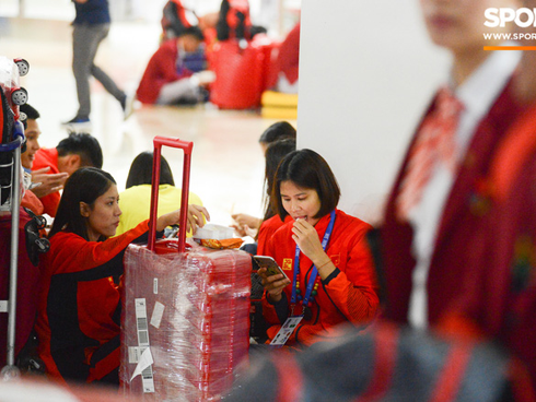 Đoàn thể thao Việt Nam trên chiếc xe này chủ yếu là lãnh đạo đoàn, bác sĩ, huấn luyện viên. Chặng đường di chuyển dài khoảng 90 km, nên các đoàn xuất phát ở đây phải đi từ sớm.