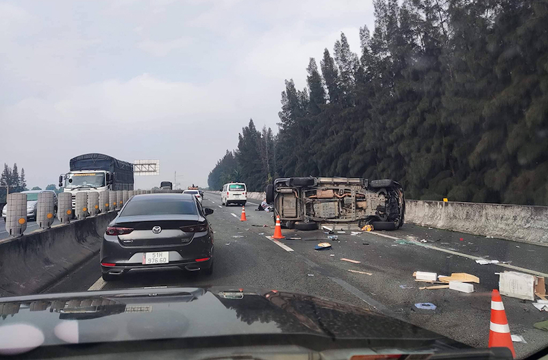 "Đến Km 21+700 thuộc huyện Bến Lức, tỉnh Long An, chiếc xe gặp sự cố nổ lốp phía sau bên phải. Sau đó, ôtô va chạm mạnh với dải phân cách cứng gần làn khẩn cấp rồi lật 5-6 vòng", lãnh đạo Cục Quản lý đường bộ IV chia sẻ với nguồn trên.