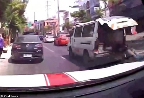 Theo truyền thông Thái Lan, sự việc hy hữu xảy ra trên một con phố đông đúc ở thủ đô Bangkok. Cảnh quay qua camera hành trình của một chiếc ô tô cho thấy các phương tiện giao thông trên phố đều giảm tốc độ và tránh vào lề đường để nhường đường cho một chiếc xe cứu thương chở người đàn ông vừa bị tai nạn gần đó.