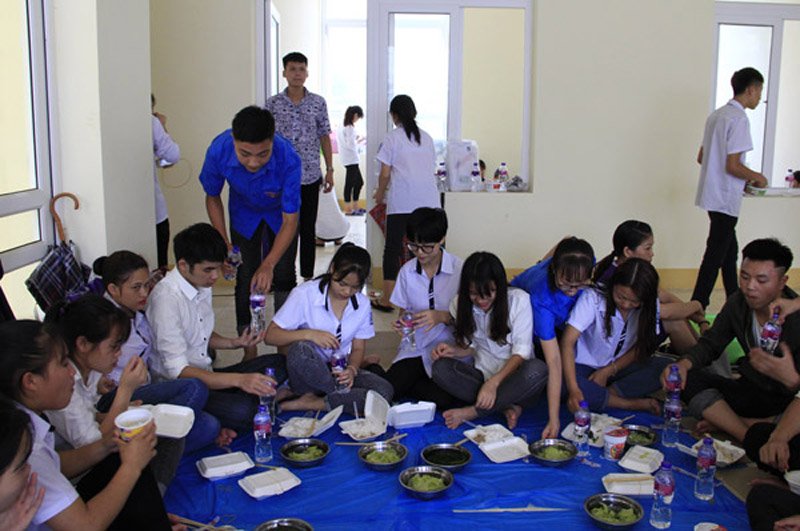 Đoàn viên, thanh niên TP Hà Giang hỗ trợ các thí sinh ăn trưa. Ảnh: báo Hà Giang