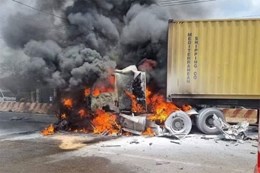 Khoảng 21h30 ngày 13/10, một vụ cháy ô tô đầu kéo xảy ra tại đường vành đai 3 trên cao (đoạn qua phường Thanh Xuân, Hà Nội).
