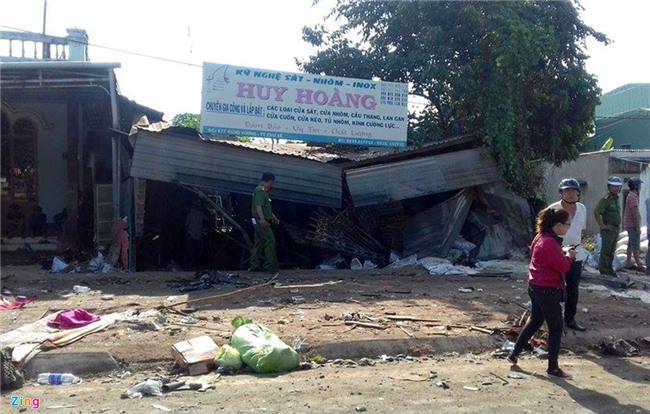 Sau cú va chạm mạnh, xe khách bị nát đầu, xoay 180 độ, nhiều hành khách bị văng xuống đường. Còn ôtô tải bị đảo chiều, tiếp tục đâm sập nhà dân rồi lật úp trên đường.