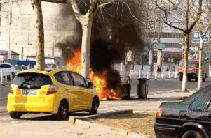 Lúc người vợ đi bộ vào trường đón con, người chồng và con gái ngồi trong xe đùa nghịch. Thật không may, chiếc xe của họ bỗng dưng bốc cháy mà không rõ nguyên nhân.