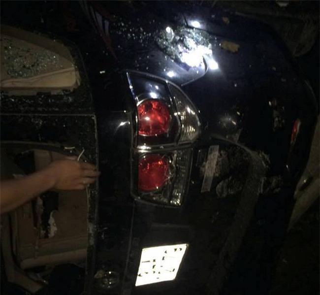 Tuy nhiên, sau đó, chiếc xe Fortuner vẫn bị người dân đốt cháy trụi, chỉ còn trơ lại khung. 2 người trên ôtô được đưa về trụ sở công an.