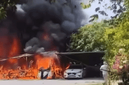 Ngọn lửa sau đó nhanh chóng bao trùm toàn bộ xe. Tài xế cùng một số người cố gắng dập lửa song bất thành.