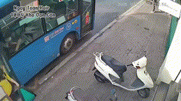 Theo hình ảnh từ camera an ninh, vào ngày 19/3, một chiếc xe đầu kéo chở trên thùng 3 cuộn vải chạy vào cổng công ty. Khi vừa qua khỏi cửa cổng, thùng xe bị nghiêng khiến 3 cuộn vải rơi xuống đè trúng nam bảo vệ đang đứng kế bên.