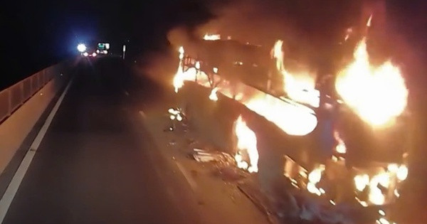 Theo thông tin ban đầu, vào thời điểm trên xe khách đang lưu thông trên cao tốc đến đoạn Km188 + 100 qua xã Sông Bình, huyện Bắc Bình, tài xế phát hiện ngọn lửa bốc lên từ phần đuôi xe.