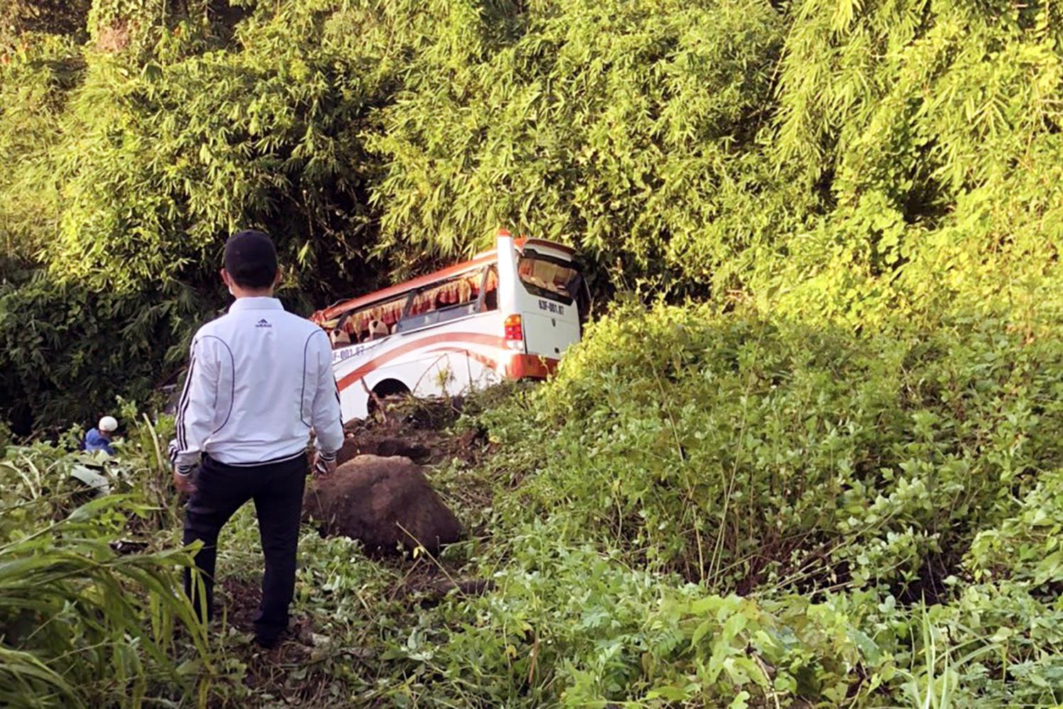 Sau sự cố, ô tô khách nằm dưới vực, hư hỏng phần đầu và hông, kính vỡ. Hành khách trên xe hoảng loạn kêu cứu, trong đó có nhiều trẻ em cùng phụ nữ. Người dân địa phương phát hiện liền tới ứng cứu, đưa các nạn nhân bị thương ra ngoài, chuyển đi cấp cứu.